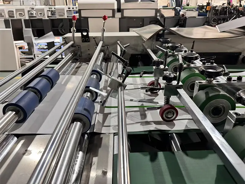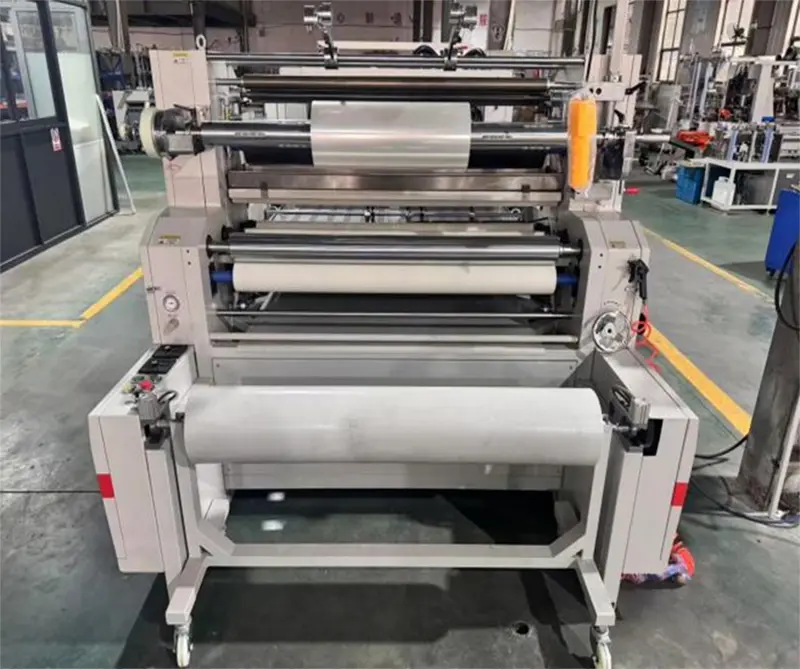 Vi erbjuder 5 rullvagnar för att snabbt komma in i nästa pappersskärningsprocess efter laminering och lindning (den första rullen måste torkas i en halvtimme efter att den är färdig, och den andra rullen kan lamineras samtidigt). Det är bekvämt för arbetare att ladda halvfabrikat, vilket sparar tid och arbete.