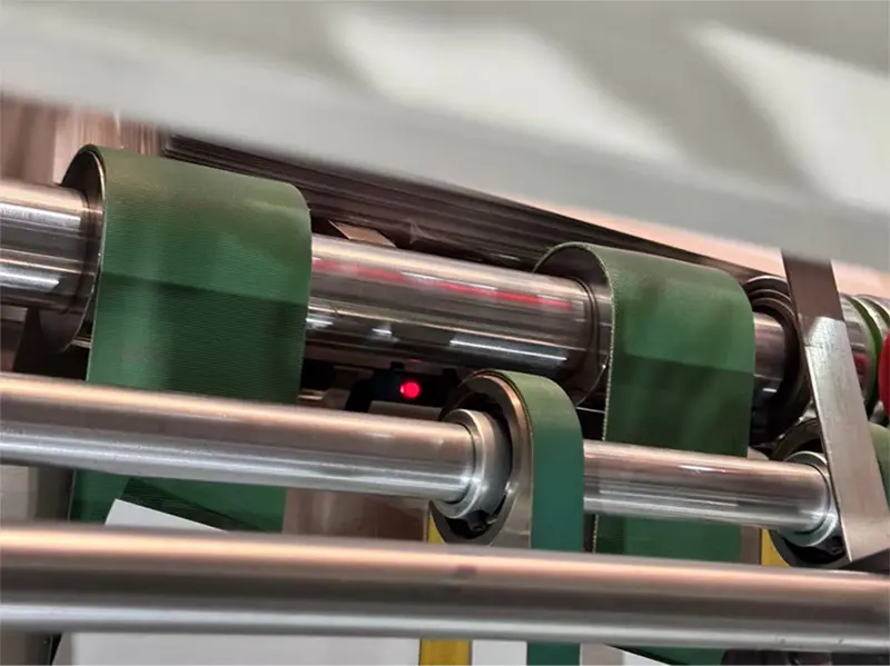 Induktionselektriskt öga, känner av papperets längd, om papprets längd ändras, kommer bältet att accelerera, och upptagningsmaskinens baffel kommer att välta och sparka ut papperet.