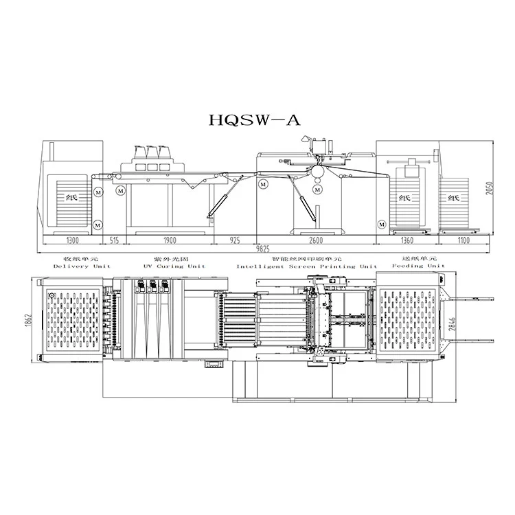 Intelligent drift: Denna intelligenta UV-härdande screentryckmaskin har ett fullt servo intelligent kontrollsystem. Med en-knappsstart slutför den automatiskt en rad åtgärder – inklusive papperstransport, screentryck, torkning, kylning och pappersinsamling – vilket ger precision, hög effektivitet och enkel användning.